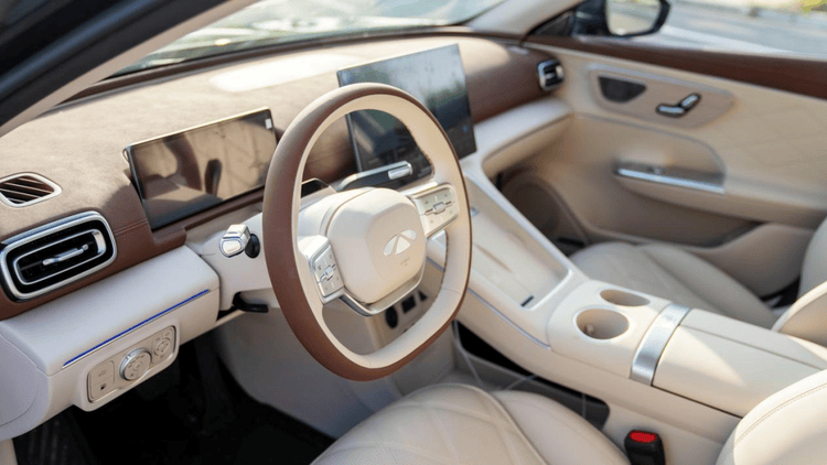 风云A9L的尺寸,对于一台五座轿车来说,已经完全是溢出的水准了,三米的轴距,可以在确保后排有非常宽裕的乘坐空间,而且在底盘有电池的情况下,地板高度也控制的不错,没有坐小板凳的感觉,为整车舒适感的打造打了一个好基础。