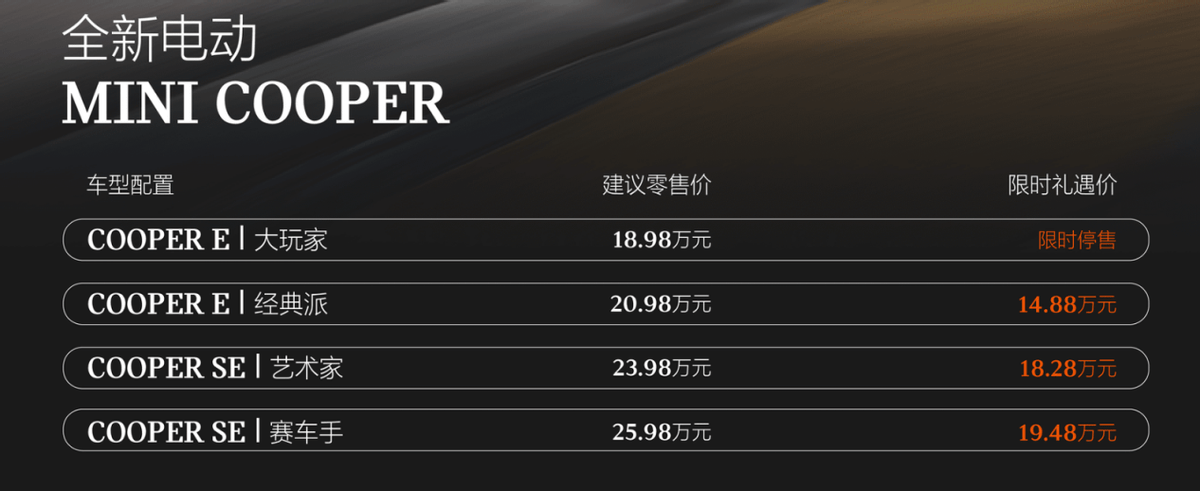 最近,MINI官宣旗下两款车型电动MINI COOPER、ACEMAN推出限时礼遇价,引发“以价换量”又一轮讨论。