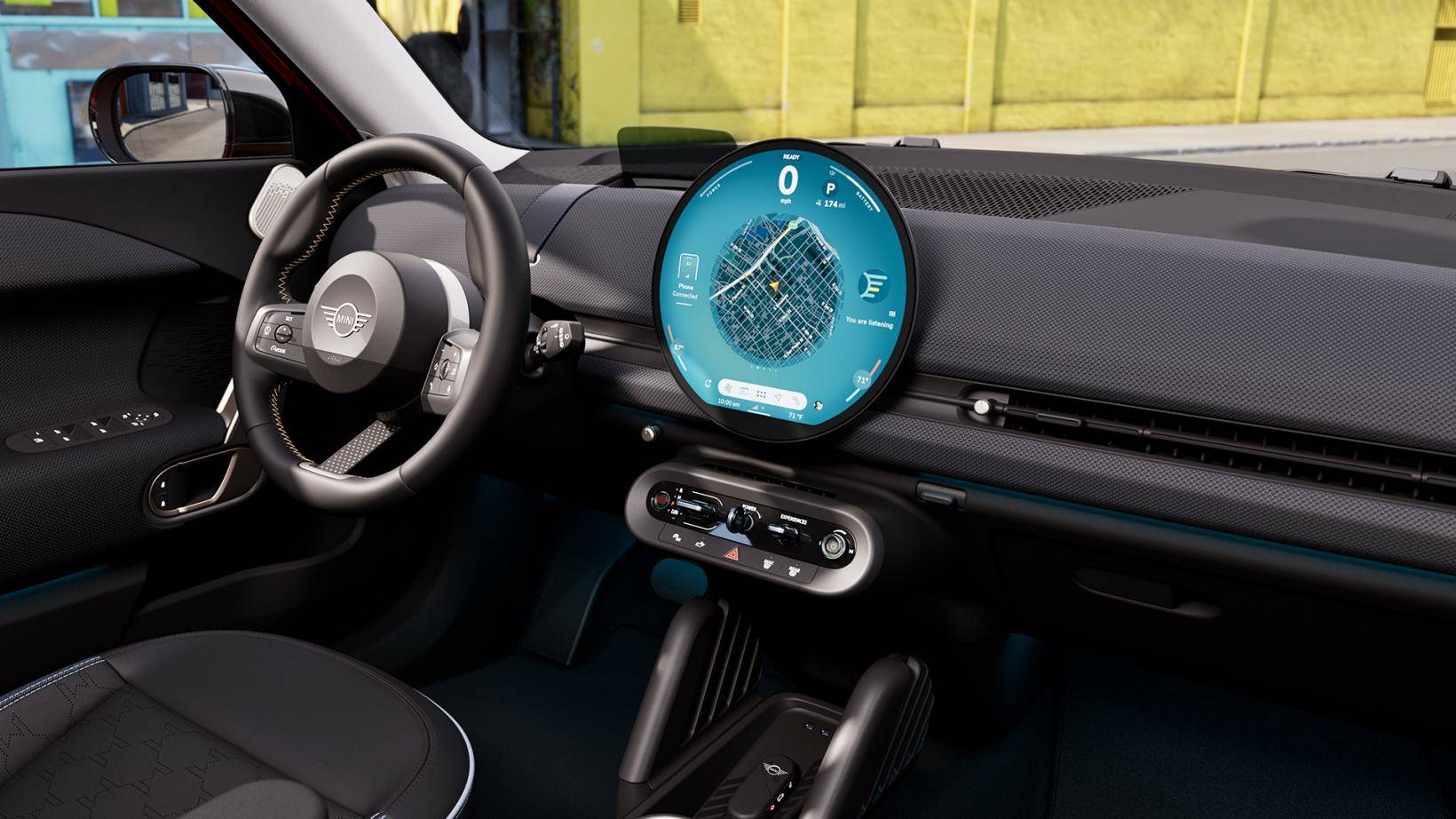 内饰上,电动MINI 匹配的圆形OLED中央显示屏和双向投影设计;通过两者结合打造沉浸式空间,其可抓取中控屏的颜色搭配出各种投影样式,中控屏的内容能够灵活地投射到中控台以及门板上,显然,电动MINI 不再局限于屏幕本身,已经从过去单一的屏幕展示,走向了全座舱体验模式。