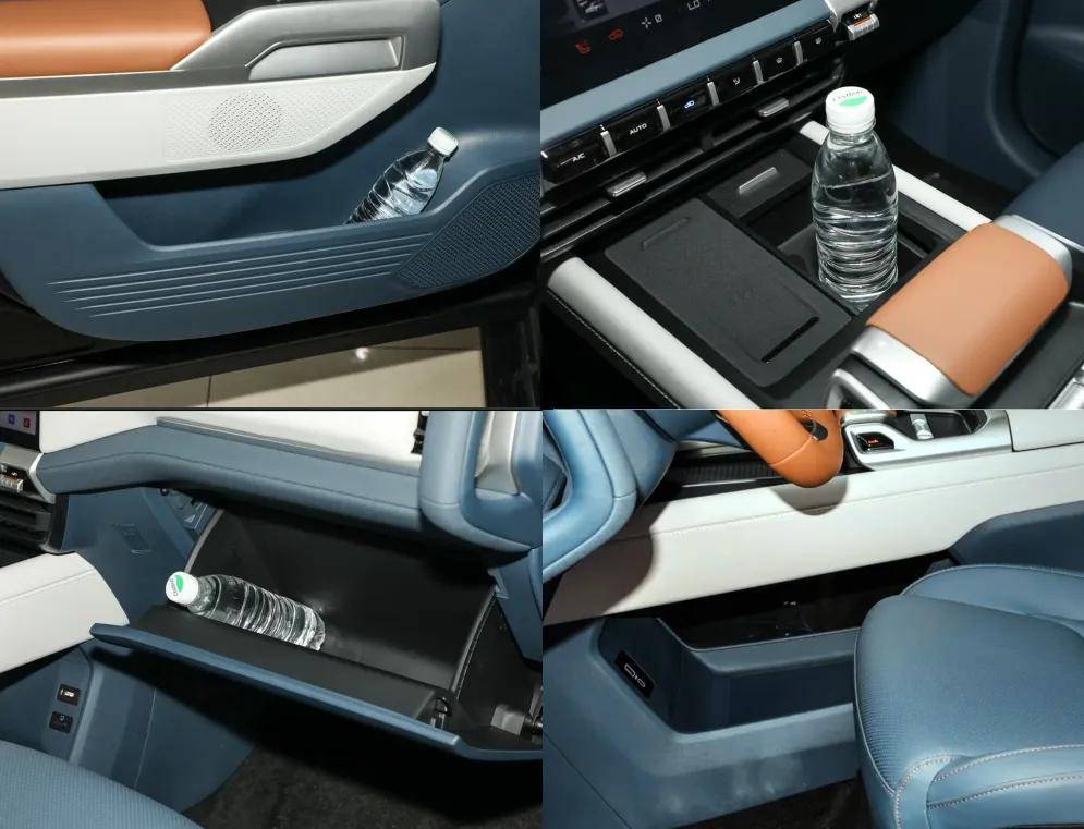 除此之外,在挡杆前方、门板上、中央T型台下方,都有很大的储物空间。