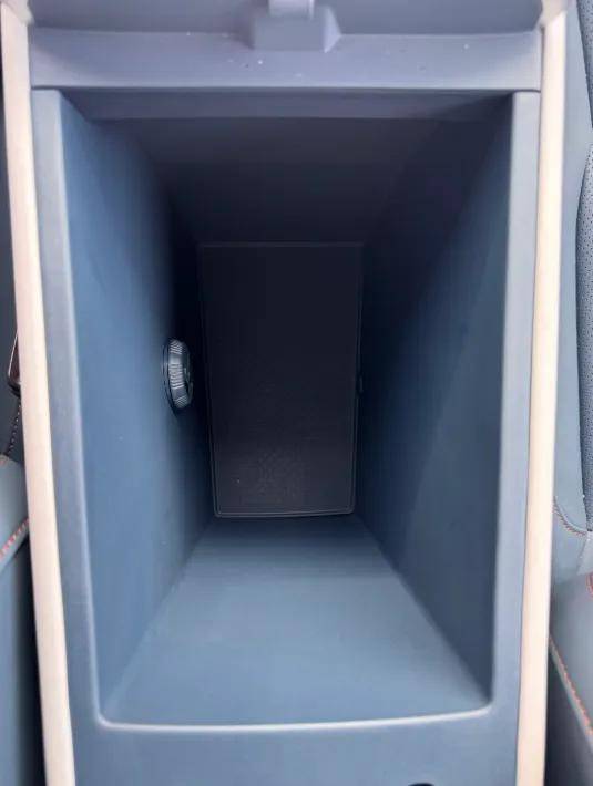 G318的储物空间也很夸张,首先是中央扶手箱非常硕大,开口很大、也很很深。里边还有一个空调出风口,夏天的话虽然没有冰箱制冷效果好,但也可以保证放在里边的饮料还有一丝凉意。在成本有限的情况下,是一个很好的设计。