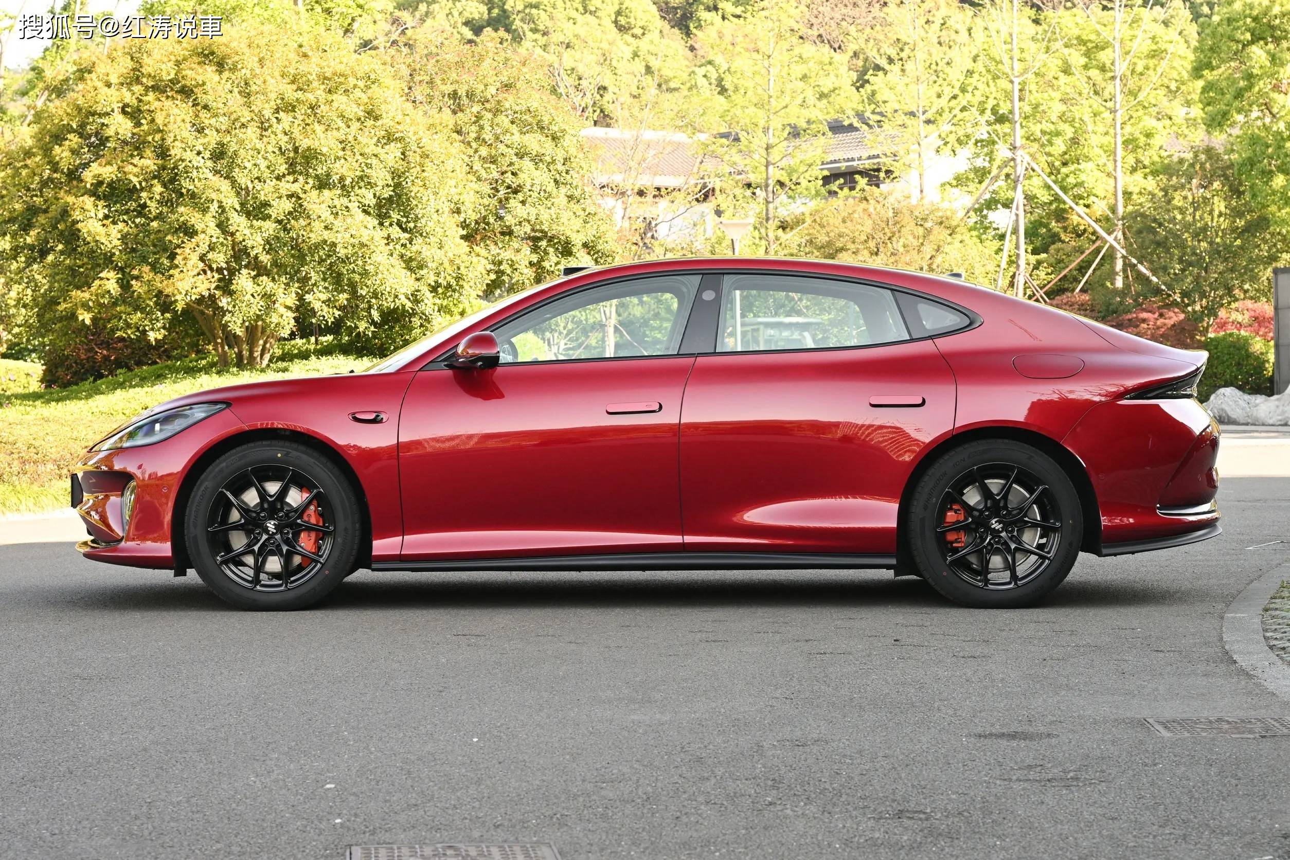 整车长宽高分别为4937*1960*1474毫米,轴距为2950毫米,车侧细节做了些调整,前翼子板的后视摄像头从单色涂装改为双色涂装,尾部造型与老款一致,拥有智慧灯幕及一体式尾翼和贯穿式尾灯,不同之处在于新款的智慧灯幕由此前只能显示红色变成了可以显示多色,投射的灯语更加生动。