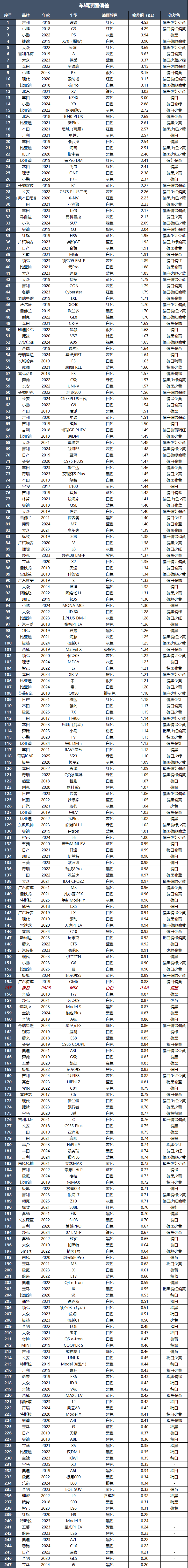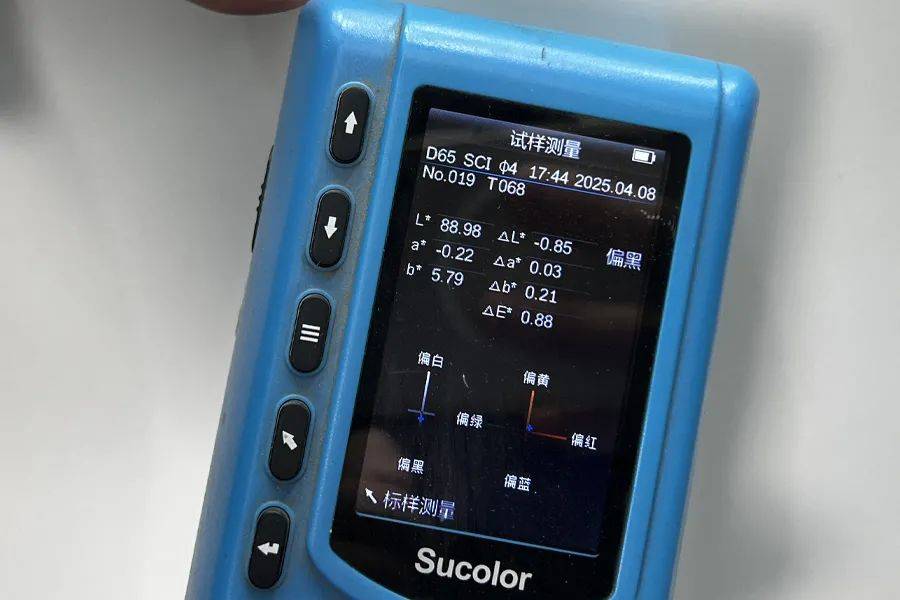 经过测试,最大色差值位于前保险杠处,色差值为0.88ΔE,比基准点偏黑。从数值上来看,这辆车的喷漆工艺质量控制得确实不错。