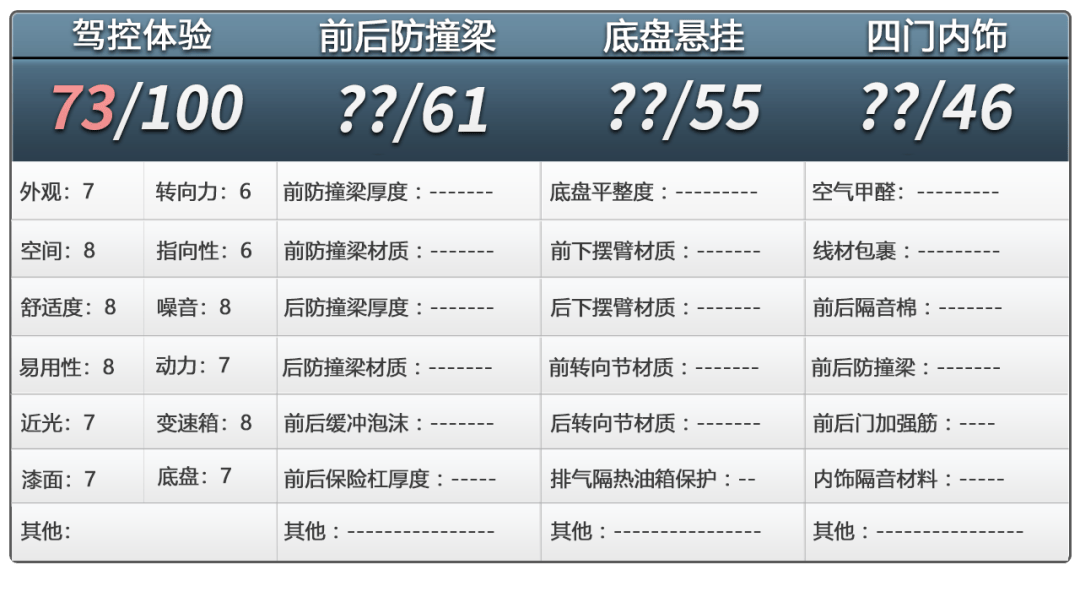 关于这辆车的内部结构用料如何,请继续关注后续的拆车内容。(本文及视频中的测量数据结论观点仅对此辆车负责,测量数据对公示的实验方法负责。)