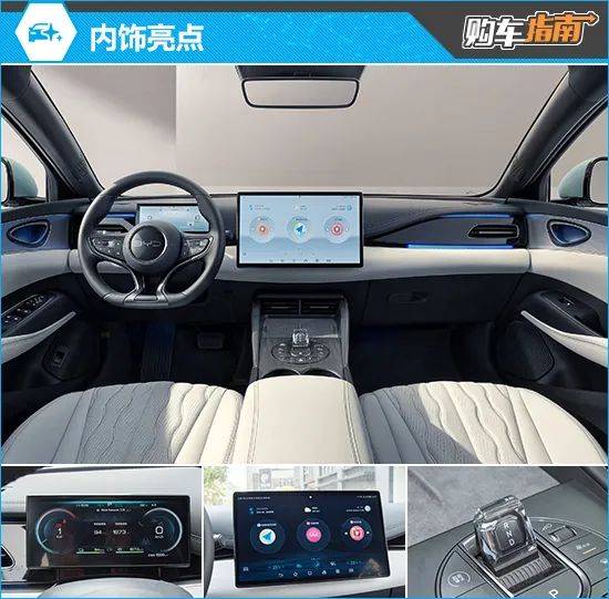 内饰方面,海豹06 DM-i延续了海洋网一贯的家族式设计,中控台通过大量柔和线条勾勒,看上去非常舒展。配备的多功能方向盘、全液晶仪表与悬浮式中控屏,对于科技感的营造非常到位。此外,造型小巧的水晶换挡杆搭配上周围的哑光面板,提升了车内的整体质感。
