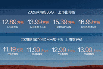 12.89万元起,比亚迪2026款海豹06GT焕新上市