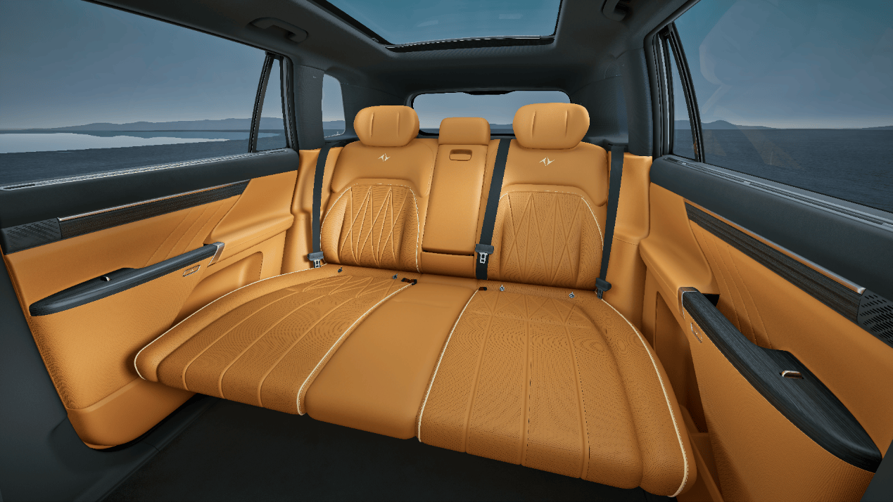 在舒适性方面,eπ008五座版追求座座都是VIP的体验,3025mm的超长轴距为后排提供了同级最大的腿部空间。新车创新打造“5米车长、3张床、2间房”的“532”标准,提供了颠覆式的乘坐及使用体验。后排座椅可以形成1.5米的横向单人床,副驾放平后可与后排座椅形成超2米的L型贵妃榻,后排座椅放倒后则可形成2.4米超大双人床,带来如房车般的舒适体验。
