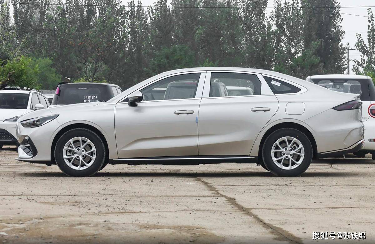 车身侧面造型很舒展,整体线条很硬朗。尺寸方面,车辆的长宽高分别为4806/1886/1490mm,轴距为2756mm,整体尺寸达到了中级车的水平,但是厂家把其定位为紧凑型轿车。