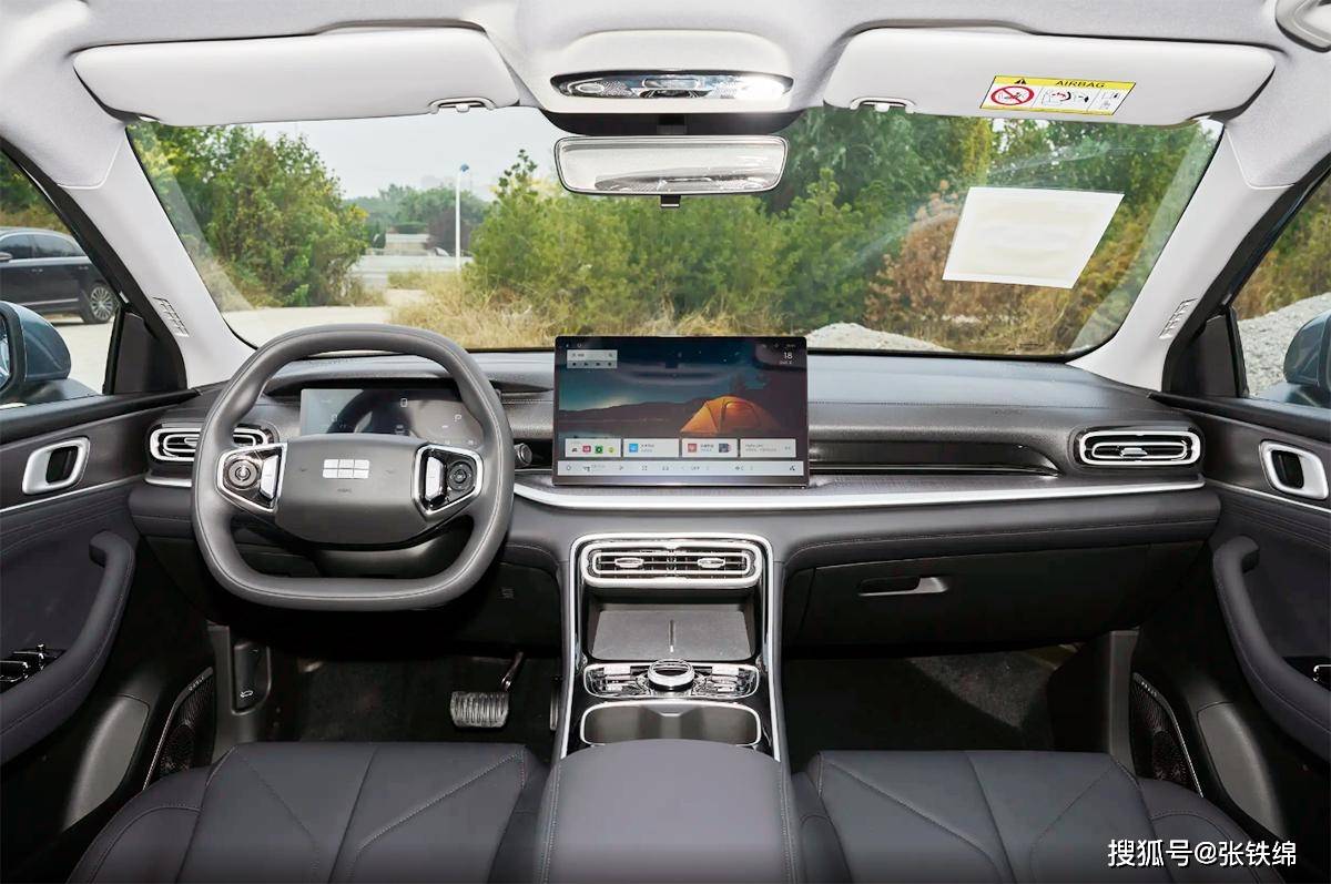 新车的中控台使用了T形的造型布局,视觉效果很简约立体,标配10.2英寸的液晶仪表盘,低配车型是10.1英寸的中控屏,中高配则是14.6英寸。两幅式的方向盘带有多功能按键,中高配车型提供了自适应巡航功能。