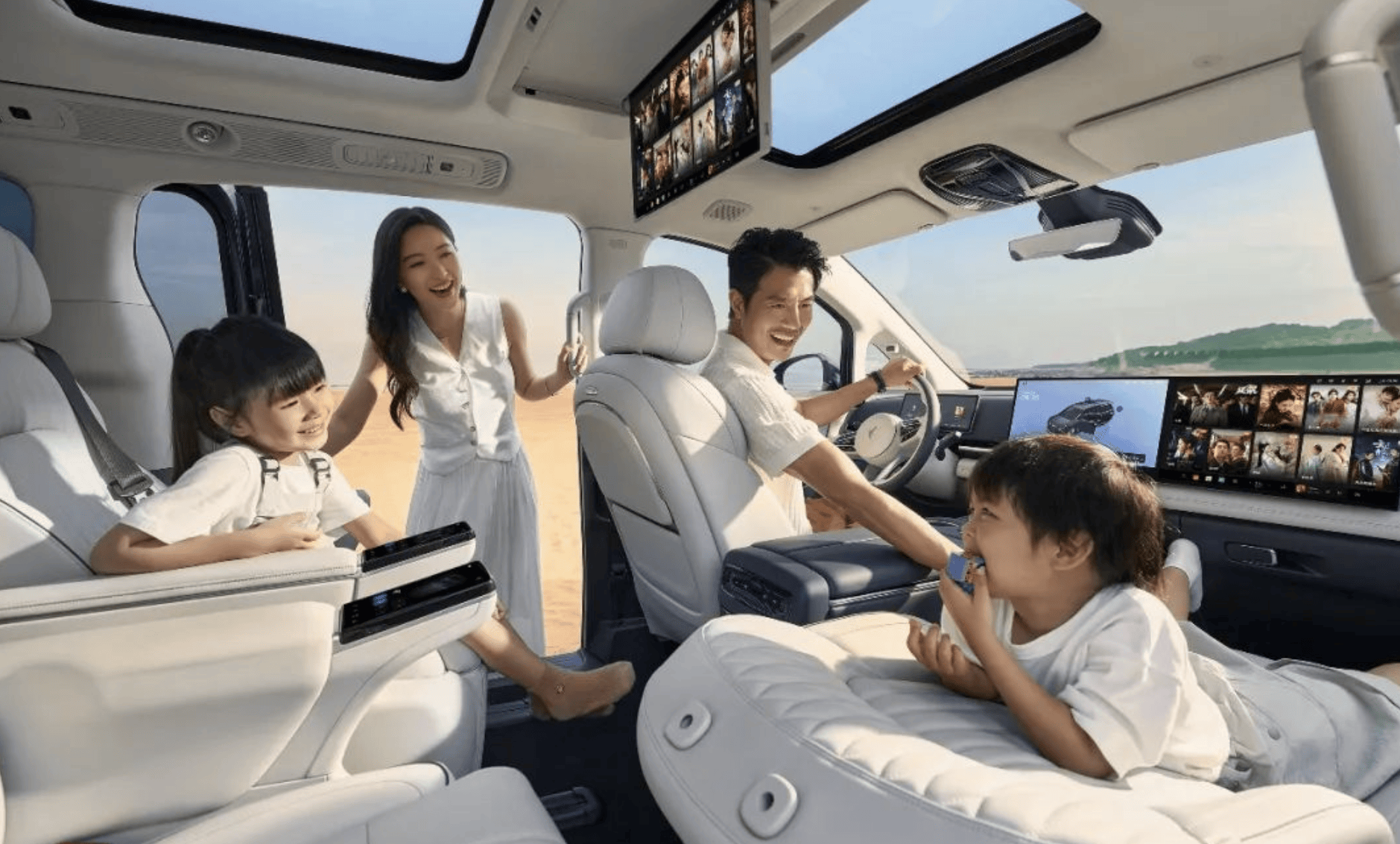12.3英寸的液晶仪表+中控屏+副驾娱乐屏配置,不仅支持四音区+方言识别的语音控制,还支持手势交互、手机控制等,无论对司机还是乘客来说,都提升了用车的便利性。拥有海量应用生态的鸿蒙智能座舱4.0,主流办公类APP覆盖99%工作场景;超级桌面打通手机生态与车机生态,导航、音乐、日历备忘录均可无缝流转;多人多屏娱乐配合独立音区交互功能,给予用户更加丝滑的交互感受。