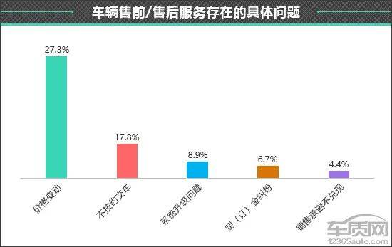 通过进一步调查得知,车主对于2024款深蓝S05在售前/售后服务的抱怨主要集中在销售问题,这一点也体现在“车辆售前/售后服务存在的具体问题”中。其中,“价格变动”的问题占比最高,部分受访车主表示厂家变相降价背刺车主。此外,还有一些车主反馈2024款深蓝S05存在“不按约交车”等情况。