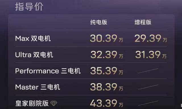 新款12全系标配华为鸿蒙座舱5,不过座舱具体功能和屏幕布局没有明确。参考现款车型,应该是三联屏布局。增程版29.39万起、纯电版30.39万起的定价,比老款略有调整。横向对比,同价位的竞品包括蔚来ET7、智己L7、极氪001等。阿维塔12的优势在于华为全家桶——ADS智驾、鸿蒙座舱、DriveONE电驱都是自家配套,系统整合度理论上更高。