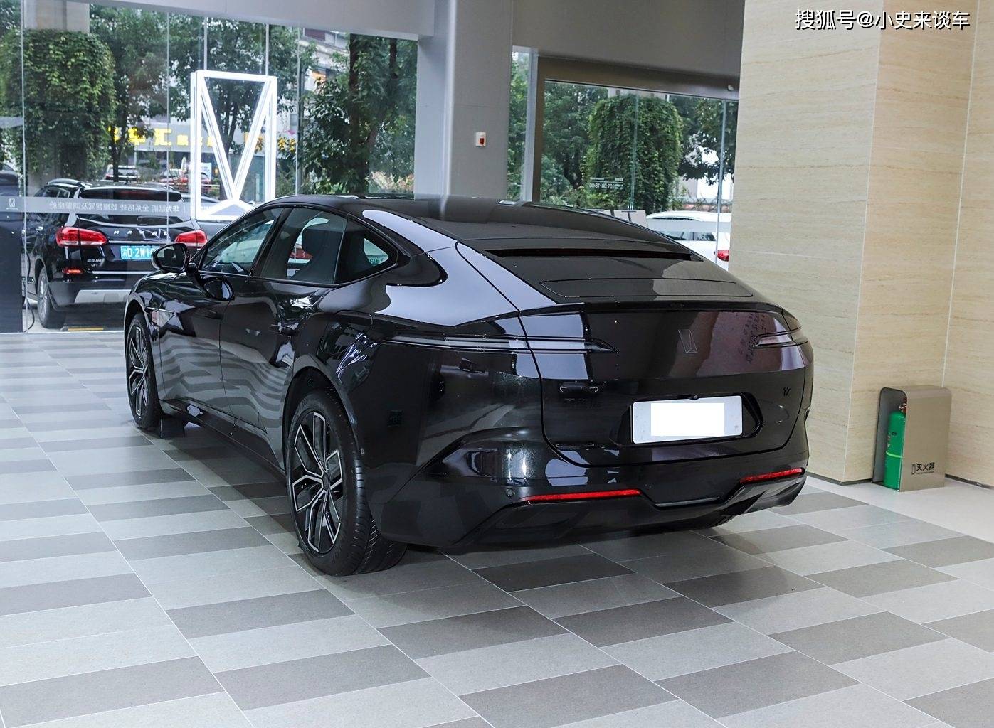 车尾部分的造型很特别,全新自主造型设计有着强烈的个性感以及辨识度,挡风玻璃尺寸很小且倾斜角度很大,后方尾门部分还有着电动尾翼设计,搭配着两侧外扩的叶子板,提升了新车不错的运动感,尾灯的造型也是呼应着车头大灯组设计,细长的熏黑灯带也很耐看,保险杠部分则是圆润的设计,底部有着大面积的扰流槽以及细长的刹车灯镶嵌,层次感表现不错。