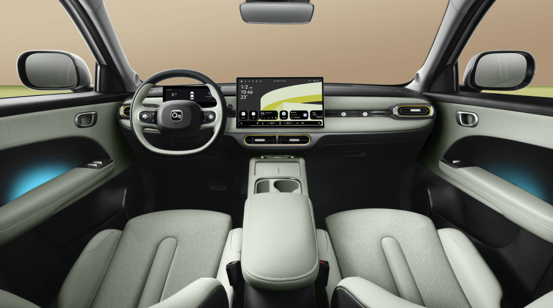 内饰方面,全新QQ3提供质感黑、丛林绿两种配色,座舱布局简约清爽,并采用怀挡式换挡设计,储物空间十分丰富。除扶手台、镂空式下层空间、门板等常规储物区域外,车内还配备4个1/4生态螺纹接口,可拓展安装相机支架、手机支架、小桌板等配件;二排座椅下方的35L抽屉式储物盒,设计也颇具特色。