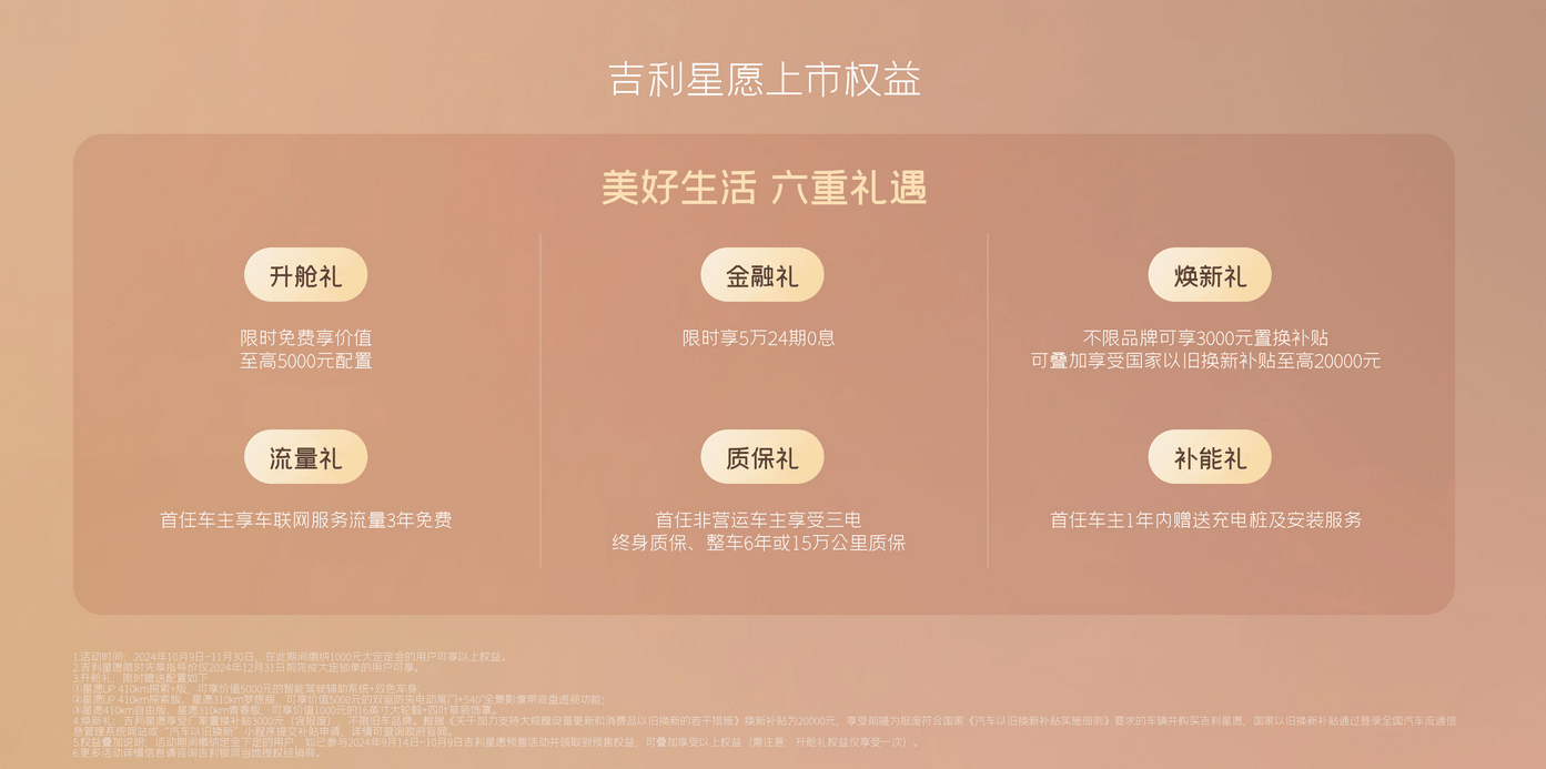 首先,咱们聊聊价格和优惠。6.98万元的起售价,这个价格对于很多家庭来说已经非常有吸引力了。而且,吉利还推出了首付5万元、24期0利率的金融政策,大大降低了购车门槛。此外,还有不限品牌的3000元置换补贴,这对于想换车的朋友们来说是个不小的诱惑。总体来看,吉利星愿的价格和优惠政策确实非常有竞争力。