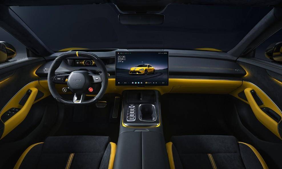 与普通版车型相比,SU7 Ultra整车加装了空气力学运动套件,前唇的铲型扰流板和尾部的碳纤维尾翼,造型尺寸都很夸张。既然是运动车型,碳纤维板的使用也是SU7 Ultra的一大特色。车顶、后视镜、方向盘、中控面板、座椅都使用了部分碳纤维材质。