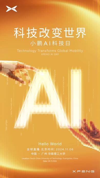 对于小鹏汽车而言,10月24日是一个特殊的日子,承载着小鹏对科技创新的渴求、变革未来出行的憧憬。自2019年以来,小鹏汽车已成功举办五届“小鹏1024科技日”。站在新十年的起点上,小鹏汽车致力于成为一家面向全球的AI汽车公司。今日,小鹏汽车董事长CEO何小鹏正式宣布“小鹏1024科技日”正式升级为“小鹏AI科技日”,并将在华南理工大学举办。小鹏汽车将以全球直播的形式,分享小鹏在AI汽车、AI机器人以及飞行汽车等领域的成果,与全世界的鹏友们一起感受科技的魅力。