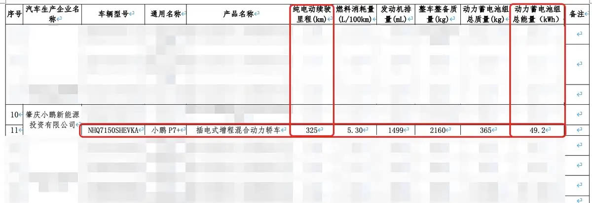最大续航325公里 小鹏P7+增程版续航申报信息曝光