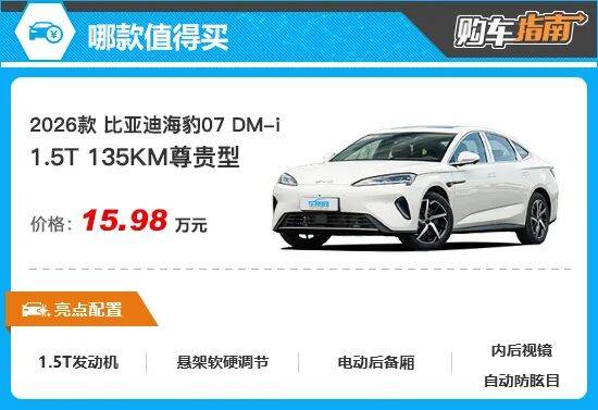 因此综合来看,如果您正在关注2026款比亚迪海豹07 DM-i,那么1.5T 135KM尊贵型值得您优先考虑。