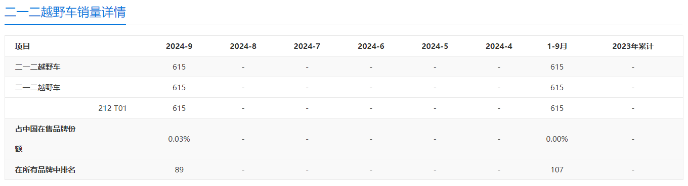 越野车本就是小众车型,月销量能上四位数就算不错。所以不止有人购买212 T01,预计这辆车的销量在未来有可能与北京汽车打造的BJ40甚至长城汽车打造的坦克300看齐,月销量两三千辆应该不会很难。