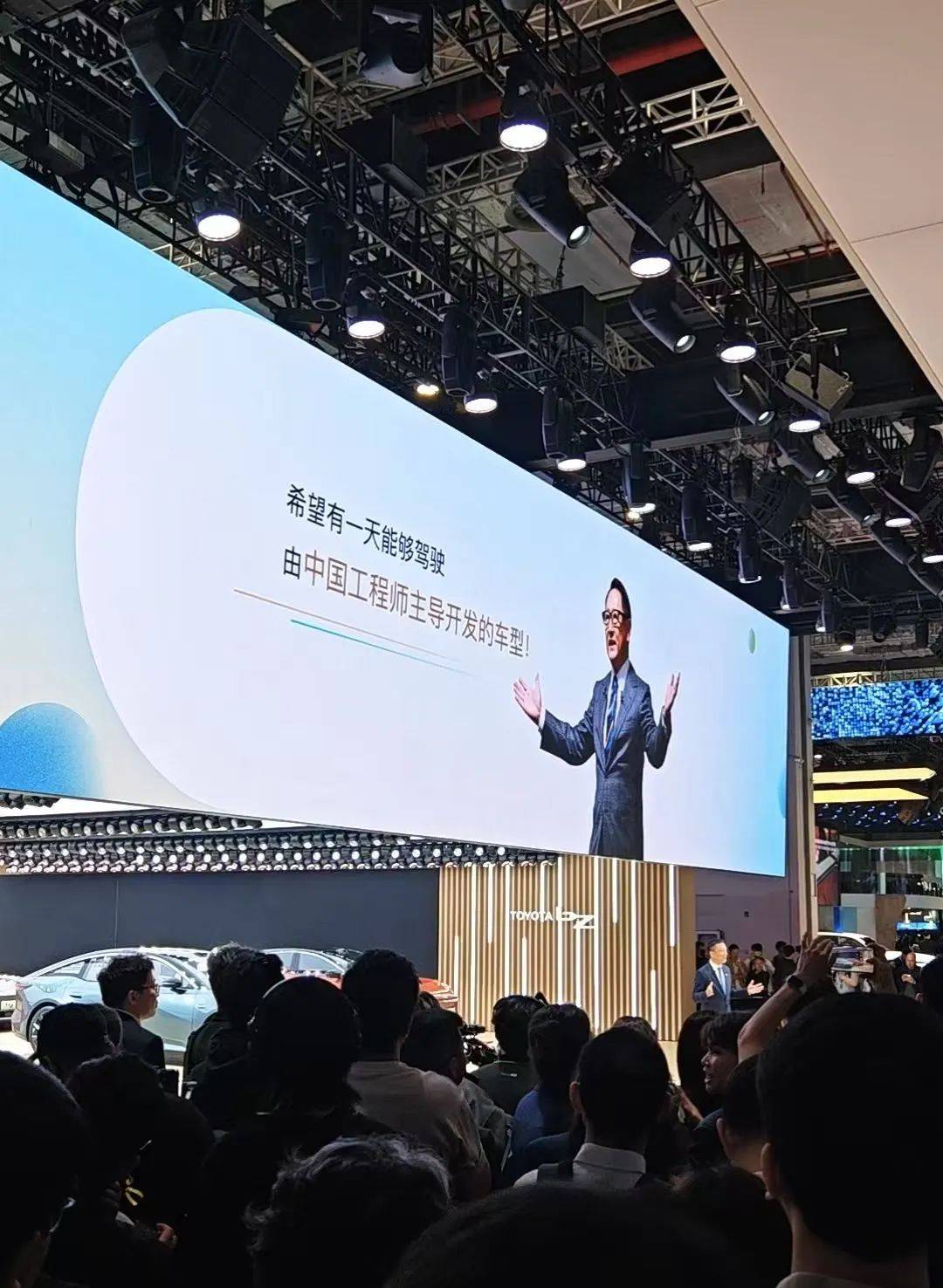 当上海车展丰田展台的屏幕上,显现丰田章男十四年前“希望有一天,能够驾驶由中国工程师主导开发的车型”的心愿,台下响起了热烈的掌声。
