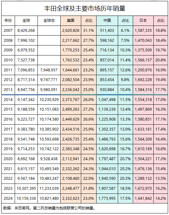 截至2024年,丰田汽车已经将“全球销量过千万辆”保持了十年,自2014年起,唯一的中断,是新冠疫情搅扰的2020年。