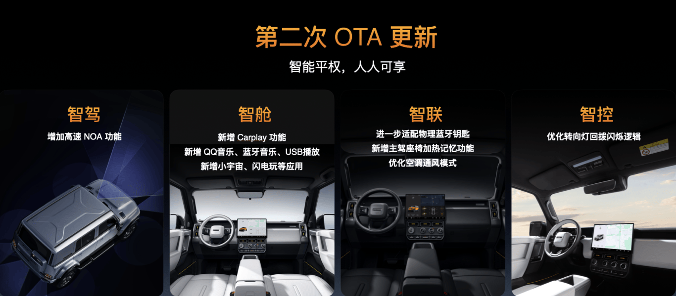 在发布会中,iCAR品牌事业部总经理苏峻博士也同步带来了车辆第二次OTA的利好消息。他表示,这将是V23首次大规模全场景OTA升级各模块功能,全新上线的高速NOA领航系统依托地平线J3+TDA4双芯片与5R5V12U感知冗余方案,支持一键激活自主超车、智能进出匝道及弯道减速功能,该系统还可预判大车/危险车辆并主动横向避让0.3米安全区,复杂场景下提前语音预警接管,大幅提升长途驾驶安全性与舒适性。智能座舱方面新增无线CarPlay无缝互联、独立音乐入口及小宇宙、闪电玩等轻量化应用,同步优化座椅加热记忆、空调通风模式及转向灯交互逻辑等细节体验 ”