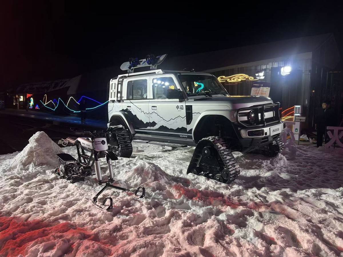 新车尾门选用侧开方式,全车设计有24处扩展接口和60余个1/4螺口,车顶行李架处预留有接口,前格栅、轮眉及车身覆盖件等部位可以快速拆装,个性化改装潜力巨大。在发布会外场就有十余辆涂装iCAR V23,甚是瞩目。