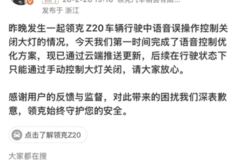 语音误关大灯致车祸,领克致歉