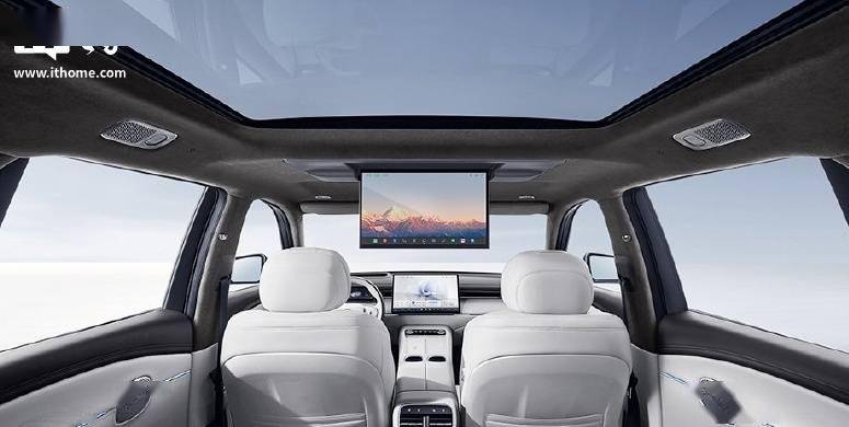 内饰及配置方面,新车座椅支持四座加热通风按摩,车内配备 17.3 英寸 3K 高清吸顶屏、四门无感电吸、“日照金山”可翻转升降音响、27 英寸 W-HUD 抬头显示系统、50W 手机无线充电面板、高通 8295P 高性能芯片。该车部分配置搭载了 200m 可变焦激光雷达,支持无图端到端智驾。