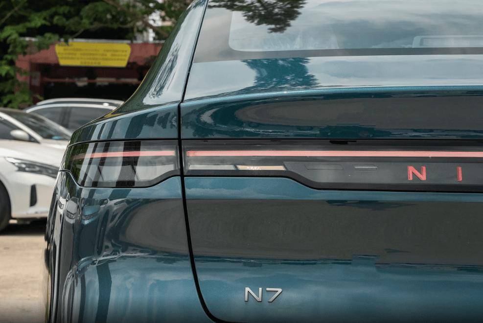 而且在它的侧面,溜背式车顶与挺直的腰线配合,看起来足够灵动,再加上它足够长的轴距,可以给人修长优雅的视觉感受。至于车尾处的设计,我个人觉得它表现平平。毕竟它和市面上大部分车型一样,只是使用“小鸭尾”设计搭配熏黑贯穿式尾灯、黑色后包围装饰。虽然看起来足够简约立体,层次感也挺强,但日产N7的尾部设计,并不能给人多么深刻的印象,也算是拉低了它的颜值水平。