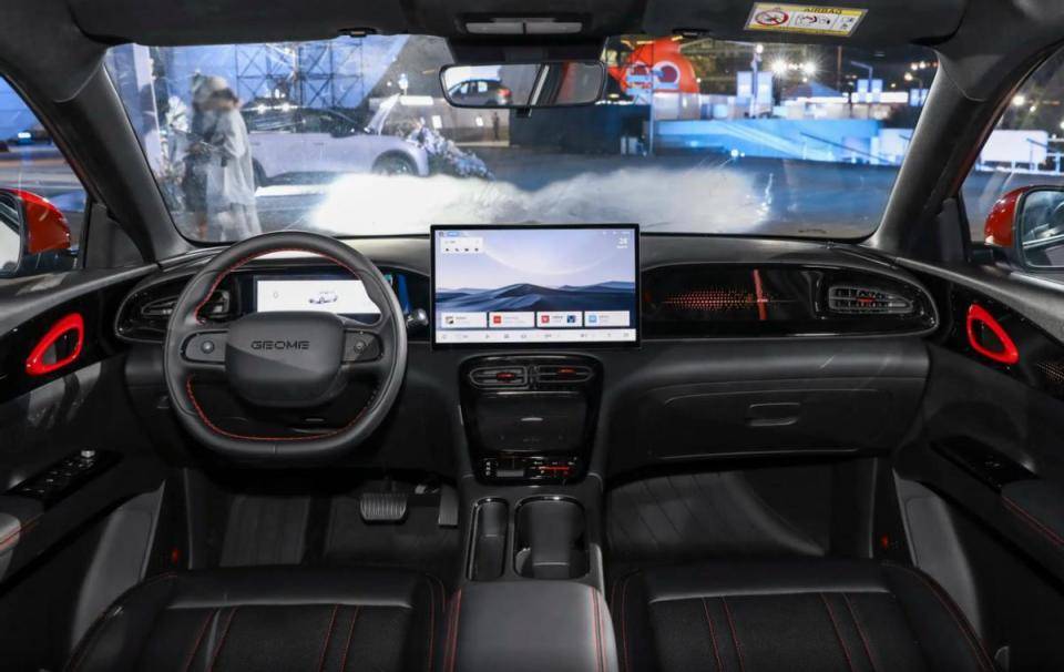 吉利星愿 STAR 限定版的整个内饰配红色缝线 / 安全带,看起来质感还是蛮不错的,这款车中控采用8.8英寸和14.8英寸中控屏,还标配 6 扬声器,车机为银河 Flyme Auto 1.9 版,整体的语音交互响应速度还是比较快的,也支持 OTA 升级,不过实际体验中,面对稍微复杂指令,确实存在卡顿的现象,智能化配置上,整车只有3颗超声波雷达,并不支持L2级辅助驾驶。