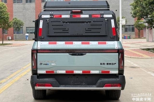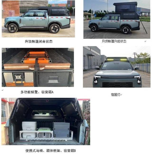 这款Z9插混版宿营车在外形设计上基本与普通版本车型没有太大的差异,车头部分依然沿用了十分具有科技感的设计风格。不过该车在货箱部分则进行了较大幅度的改装,比如加装了箱体框架、宿营箱、帐篷、多功能梯凳等专用设备,以满足专用车的定位要求。