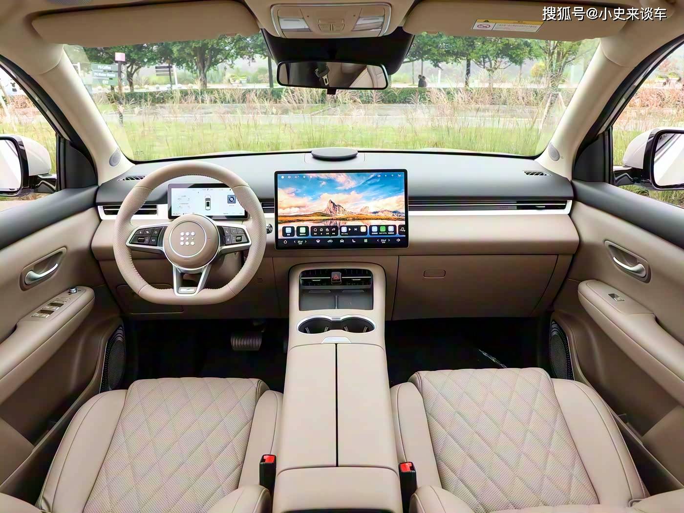 进入车内,内饰采用 “科技简约 + 场景实用” 的设计思路,中控台布局规整,搭载悬浮式中控屏与全液晶仪表,配合高通 8155 芯片,操作流畅无卡顿,支持豆包大模型语音交互,可识别方言与连续指令,老人小孩都能轻松使用。用料上虽以硬质塑料为主,但关键区域采用软性材质包裹,搭配细腻缝线,符合该价位的品质预期。空间表现方面,2785mm 轴距带来 3162mm 的车内有效空间。身高 178cm 的乘客调整好主驾坐姿后,头部仍有一拳两指余量;后排腿部空间更是达到两拳多,纯平地板设计让中间乘客无需蜷腿。