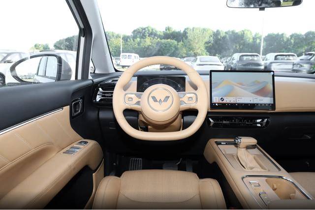 内饰设计方面,五菱星光730的车内不管是燃油、插混还是纯电版,内饰布局基本没啥差别,一眼瞅过去就是环抱式座舱,坐进去就有种被包裹住的安全感,特踏实。方向盘是平底的,看着运动,打方向的时候也不硌腿,操控起来贼顺手;中控那块12.8英寸的悬浮大屏特别吸睛,清晰度够高,操作也丝滑,还支持车机互联,导航、听歌、连手机都方便。旁边还有个悬浮式仪表,开车的时候瞄一眼车速、电量啥的,一目了然。