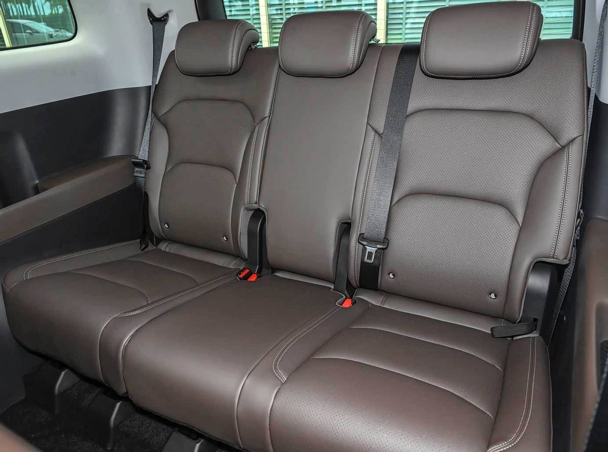 另外,它的前排座椅可180°放平,变成大躺椅;第三排坐垫尺寸有1230×490mm,小孩可以站立、躺卧,就算是坐三个成年人也没什么压力,而且第三排靠背可以放倒+向前翻折,最大容积可拓展至1202L,日常大件基本都能装下。