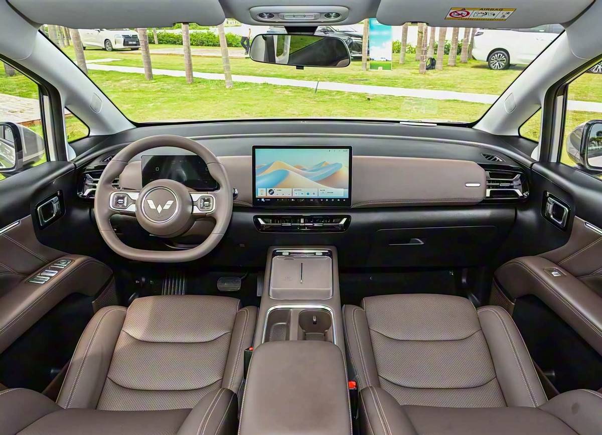 我们先来看空间,这是星光730的核心卖点。它的车长4910mm、轴距2910mm,座舱内部空间长度331mm肩部横向1500mm合2++3布 和比实的椅,人均都有大座位,每个座位都是VIP。星光730还可以选装右侧第二排电动侧滑门,上下车更方便,对老人小孩比较友好。