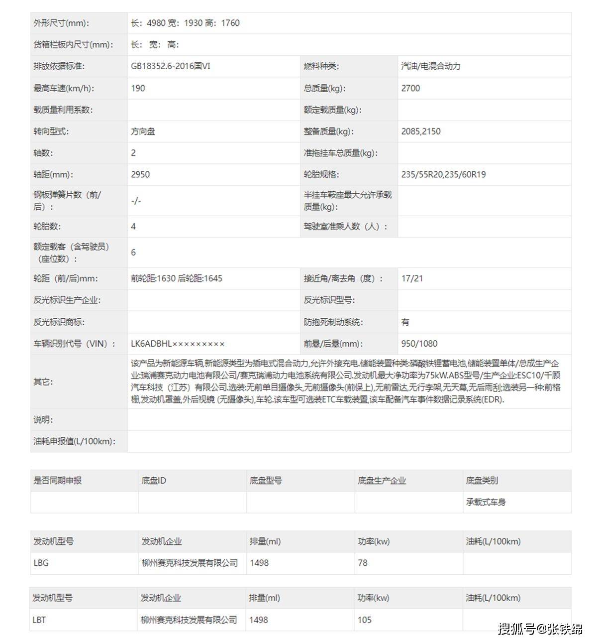 动力部分,从申报信息来看,新车将会搭载由1.5L和1.5T两种发动机组成的插电混动系统,其中1.5L自然吸气发动机最大功率为78千瓦,1.5T发动机最大功率105千瓦,匹配的是磷酸铁锂动力电池组。