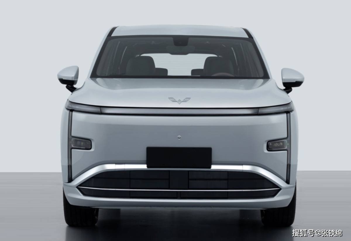 前脸部分的整体外轮廓很方正硬朗,中间是大面积的封闭式造型,车标位于机盖的前端,灯组使用了门形的环绕风格,上部是三段式横贯灯带,前杠两侧的远近光灯组外侧是竖条形灯带。前杠下部是多边形的中网,中网上部是贯穿式镀铬饰条,内部是细条形的镀铬格栅。